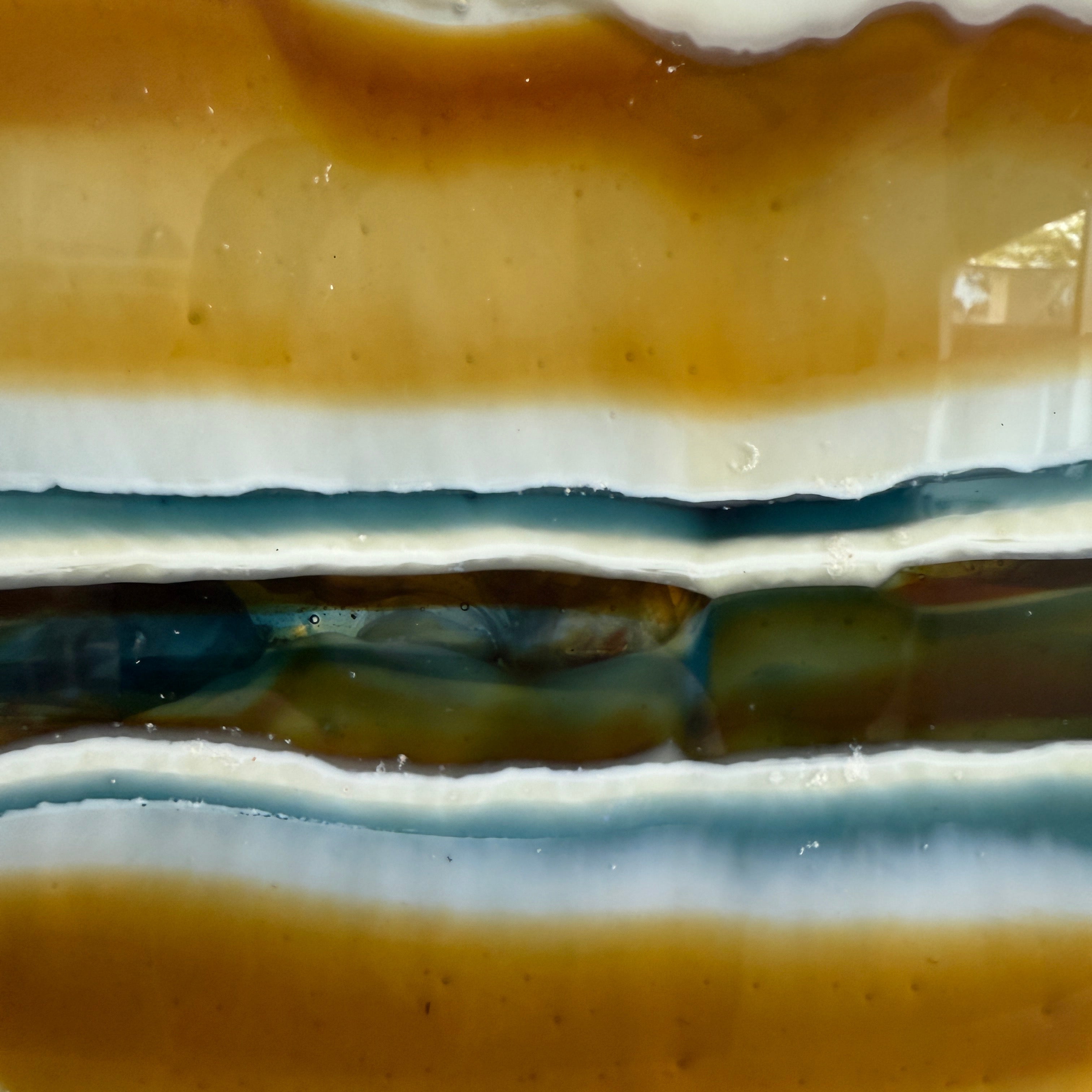 Small bubbles or subtle variations are natural in kiln-formed glass and part of the handmade process.