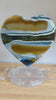 This one-of-a-kind Amber & Navy Blue fused glass heart is handcrafted in Florida, USA. Each heart is kiln-formed at over 1,700°F, then hand-polished and fire-polished to create smooth edges, rich depth, and a luminous glass finish.