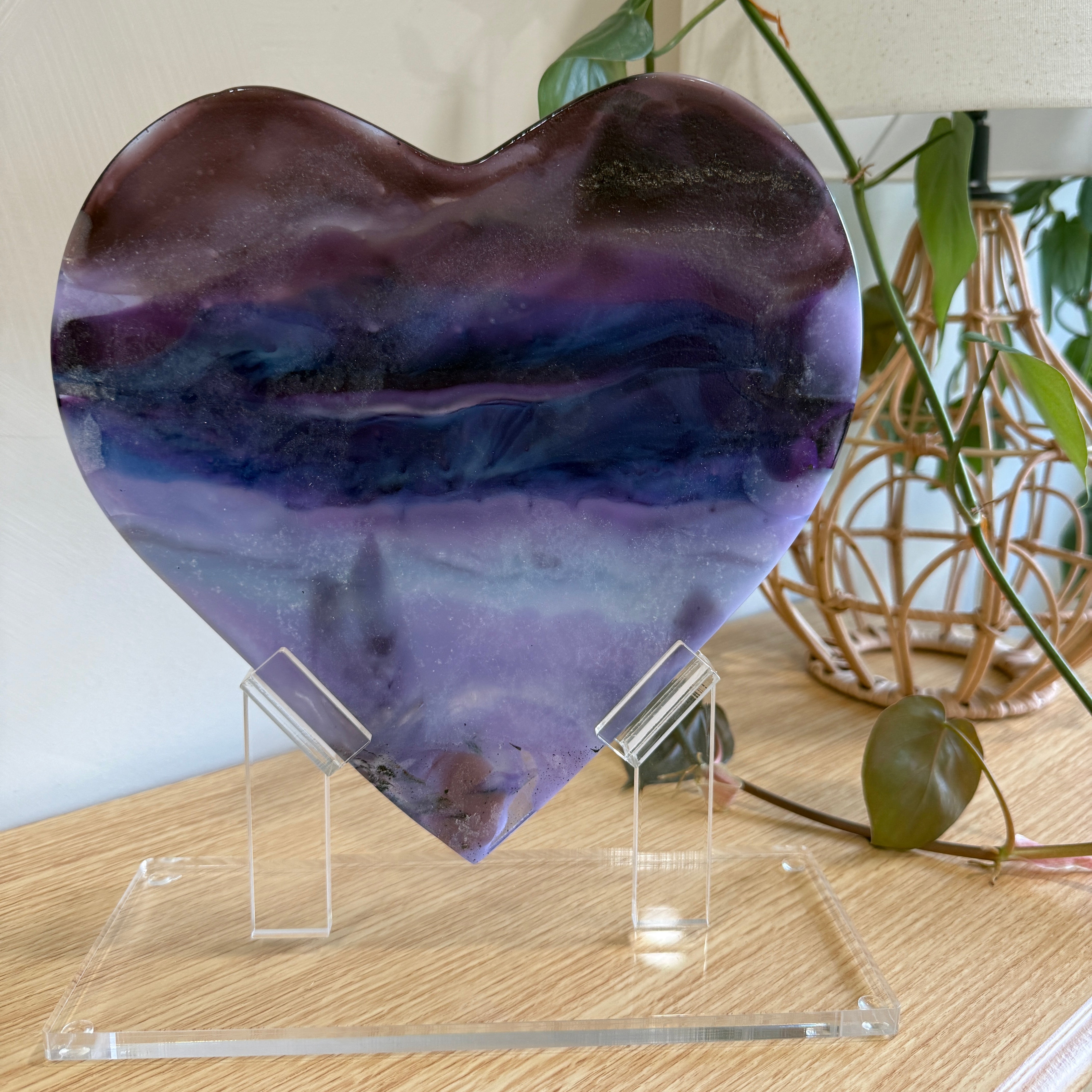 This one-of-a-kind purple glass heart is handcrafted in Florida, USA using gold-infused purple art glass for exceptional depth and luminosity.
