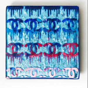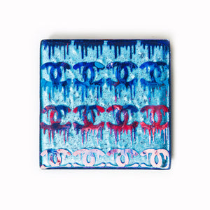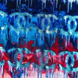 This Chanel Drip monogram logo piece is first created with ultra shimmering & sparkling ice blue to silver dichroic glass, which changes colors depending on on the l. . . Read More >