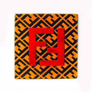 This luxury Fendi Monogram Logo piece is made with in a traditional Fendi color scheme of brown and black. The large red F’s are hand sawed then fused on top of the Fend. . . Read More >