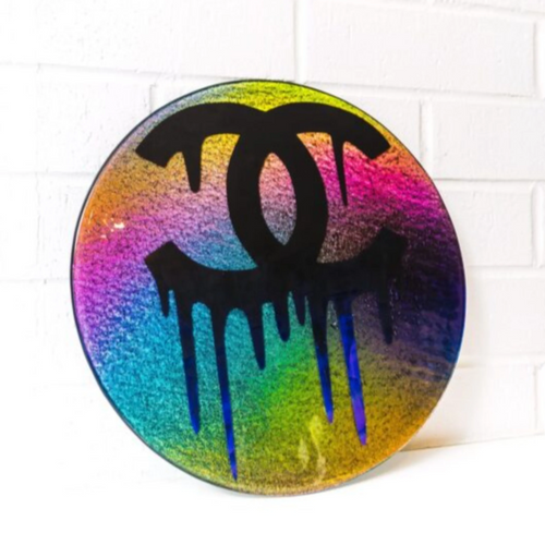 Nataly Biskay has been a Fused Glass Artist for 15 Years. Biskay studies under Tim Harlan in Southern California. Biskay’s work is unique, a reflection of nature’s natural beauty combined with designer fashion, but it is limited in supply. She rarely accepts more then one commission per month but has gained notoriety producing several works for social media influencers. She divides her time between Orange County, California and Puerto Rico. In her artwork below she quotes “ It takes sunshine and rain to make a rainbow” It took the unique piece of dichroic glass to get his shimmer. Dichroic glass is until glittery and is created by stacking layers if glass and micro layers of metal ( or oxides) which give the glass shifting colors. Nothing sparkles like Chanel! For more of Nataly’s work following her on Instagram @NatalyBiskay. For direct commissions, email her at contact@NatalyBiskay.com. Website NatalyBiskay.com